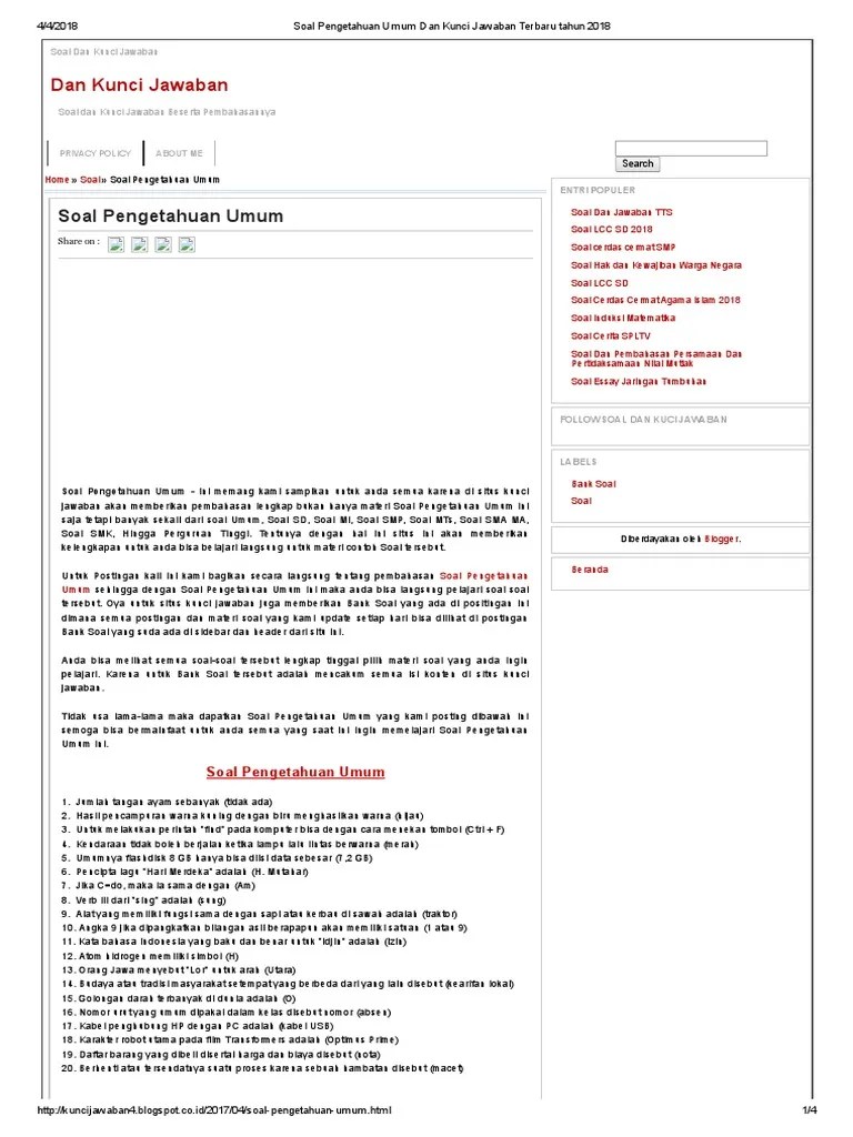 Soal pengetahuan umum dan kunci jawaban pdf.